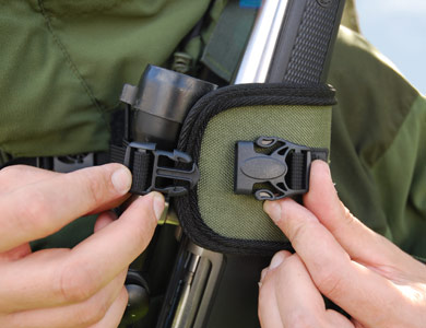 Spännena bör endast öppnas då jägaren står i upprätt läge. All vapenhantering och användade av Rifix sker på egen risk. Av säkerhetsskäl rekommenderar vi inte att ha en kula i loppet på geväret under användning av Rifix.